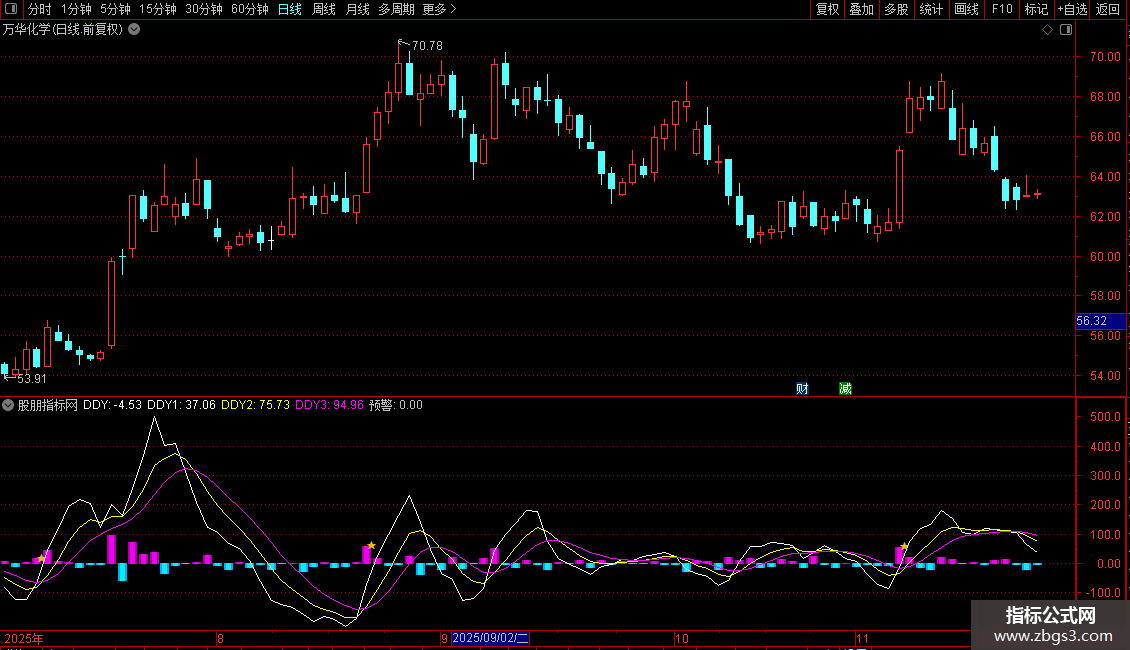 预警:DDY>0 AND CROSS(DDY1,DDY2) AND DDY1<0,LINETHICK;