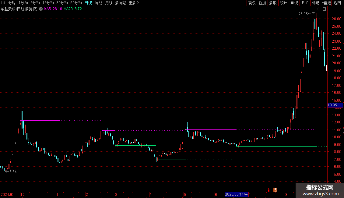 【实战价值】在主图叠加显示波峰波谷双轨线,帮助交易者快速识别:1.上升趋势中的回调支撑位(波谷)2.下降趋势中的反弹压力位(波峰)3.箱体震荡的边界锚点。特别适合短线波段操作,当价格突破最近波峰/波谷时,可辅助判断趋势延续或反转信号。