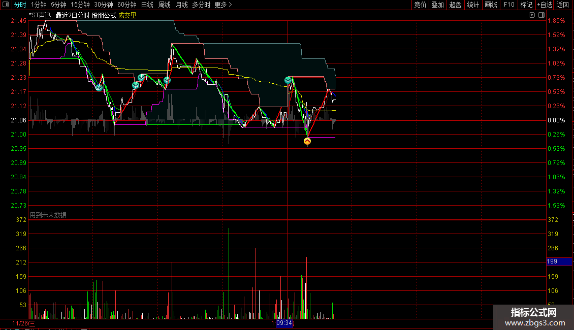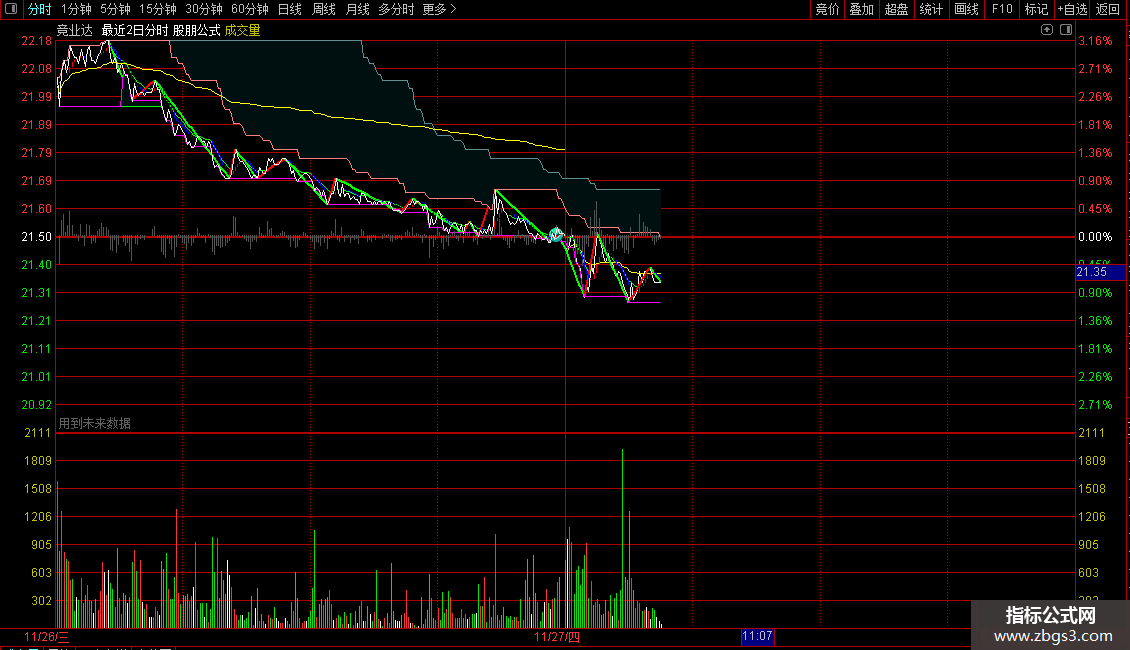 指标通过多条均线组合识别趋势方向,在价格高低点间绘制支撑阻力线,结合长短期高低点通道判断买卖时机。操作策略为:当短期均线上穿长期均线且价格突破通道上轨时买入,下穿且跌破下轨时卖出,同时监控超买超卖信号。