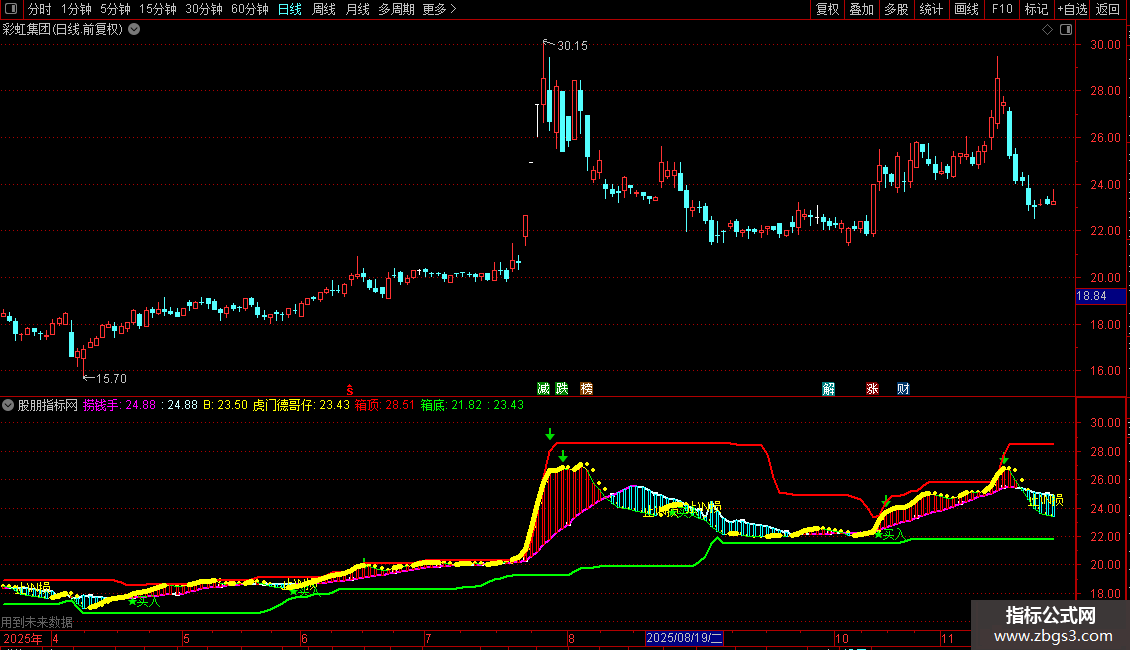 箱底:MA(REF(LLV(上收,30),1),2),COLOR00FF00,LINETHICK2;