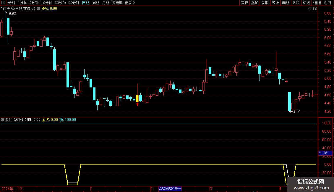 股价长期盘整中出现金银坑 可视为白金坑机会 千万不要错过 若个股以小多头方式拉升回调后出现金银坑 则是钻石坑信号 应当机立断及时介入 金银坑指标能有效识别这些关键形态