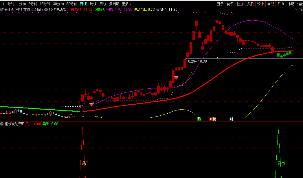 本指标包括1个主图、1个副图和1个选股公式。这个“起伏波动带”指标是通达信软件里一个很实用的主图分析工具。它能帮你直观判断股价的趋势方向和波动区间。