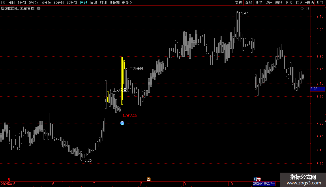 通达信〖主力扫货入场〗短期中期转强主图指标源码