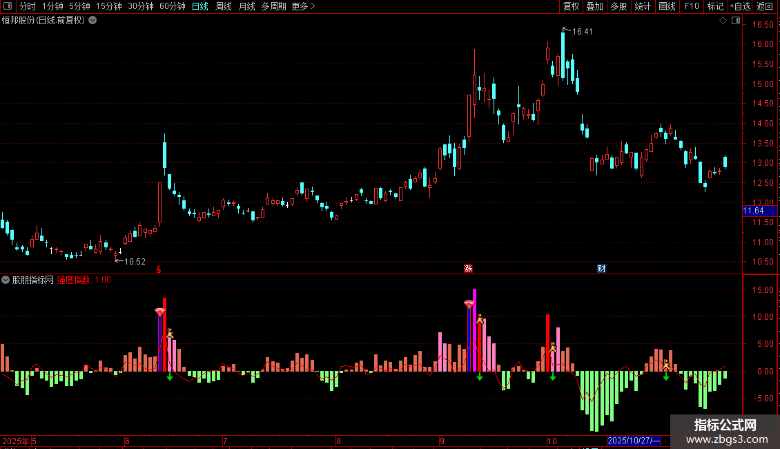 强度指数:ROUND2(FF*100,1) COLORRED;