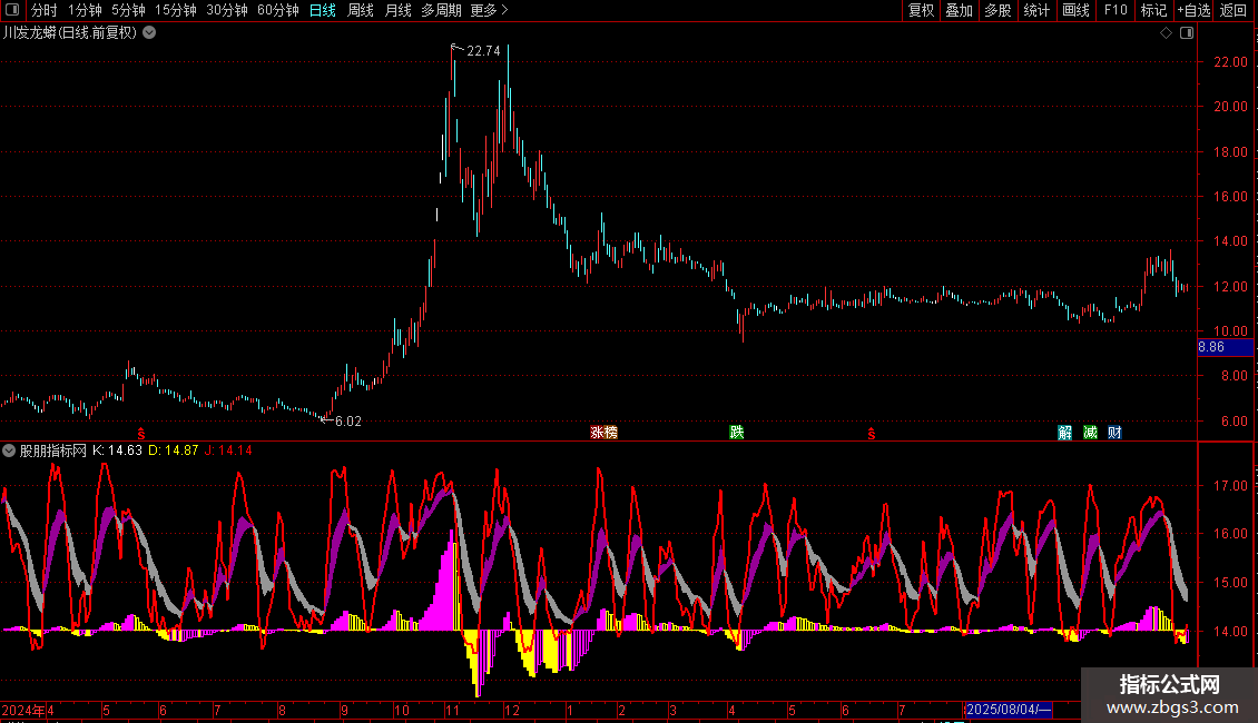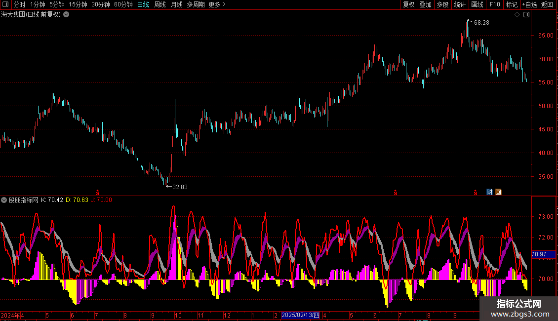 MACD和KDJ指标组合。无未来,无加密。指标来源于网上,自己使用多年,感觉指示明确,适合各时长的波段操作。