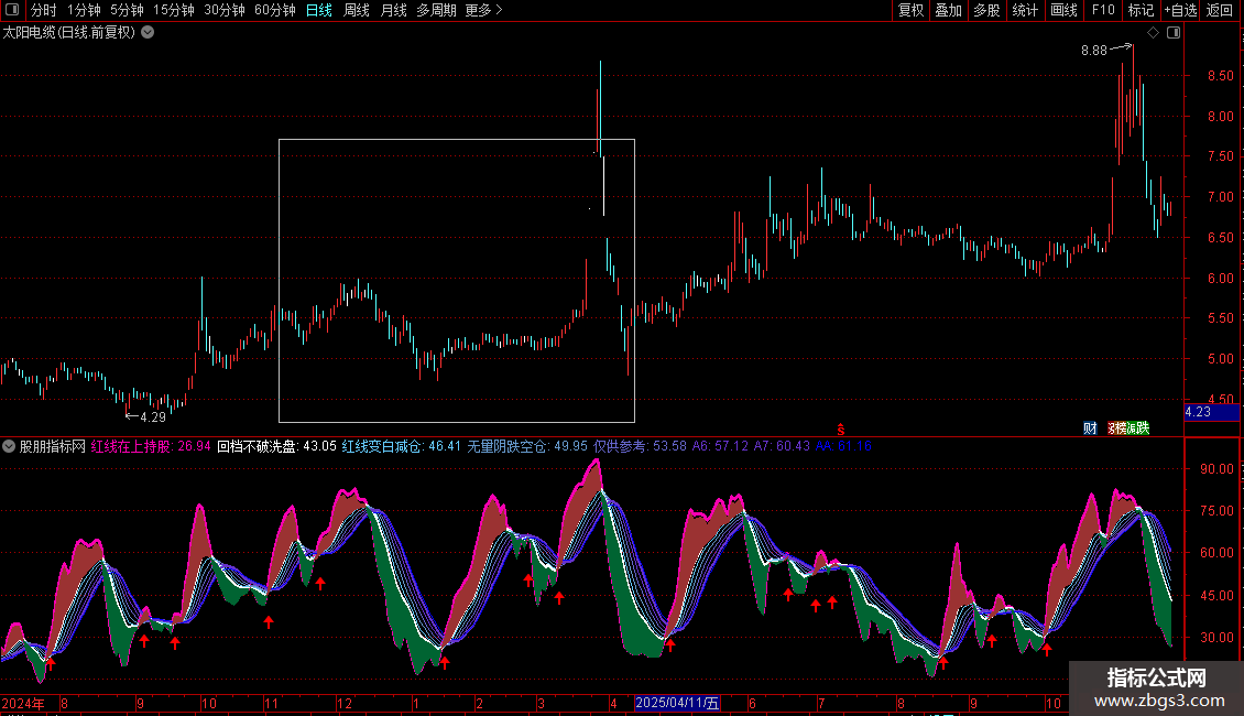 DRAWICON(CROSS(红线在上持股,A7),(红线在上持股 * 0.80),1);