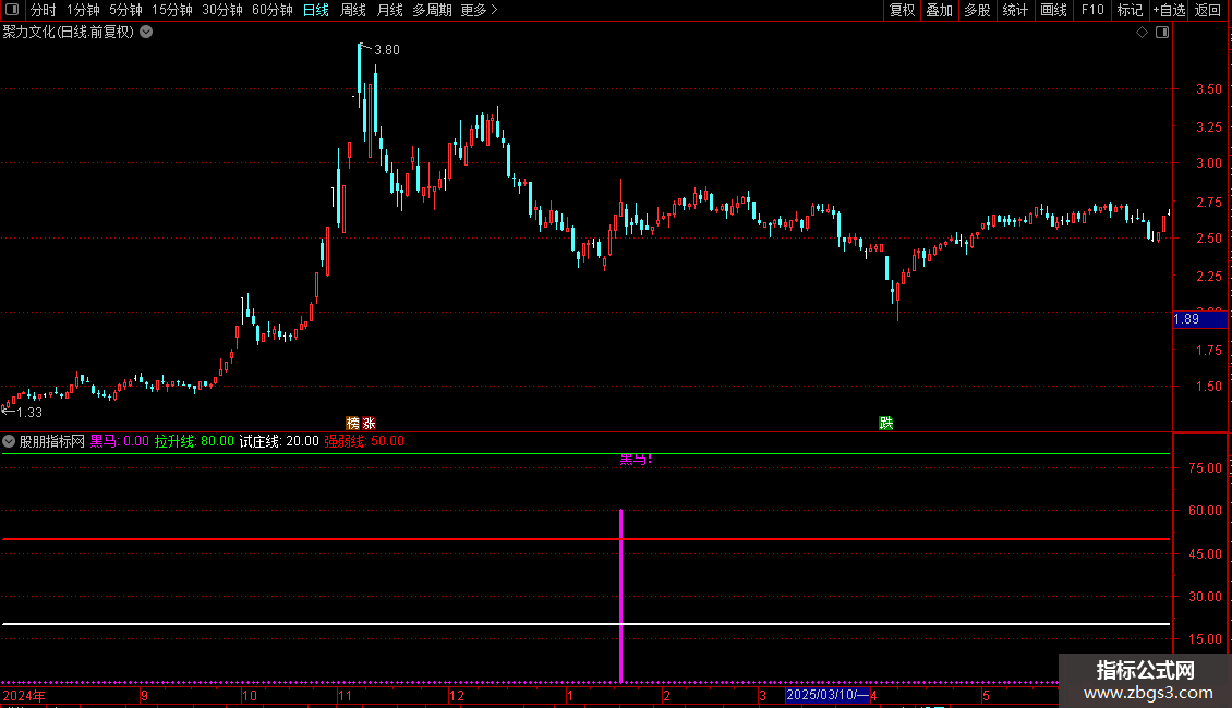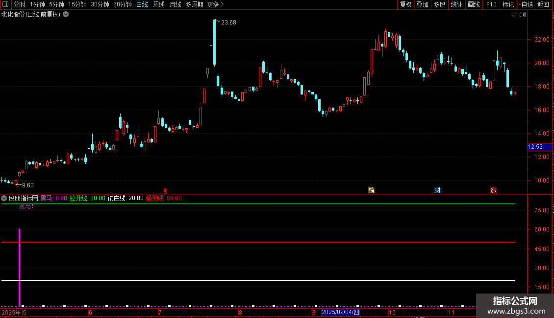 黑马:IF(VAR5,60,0),STICK,LINETHICK3,COLORF00FF0; DRAWTEXT(VAR5,78,'黑马!'),COLORF00FF0;
