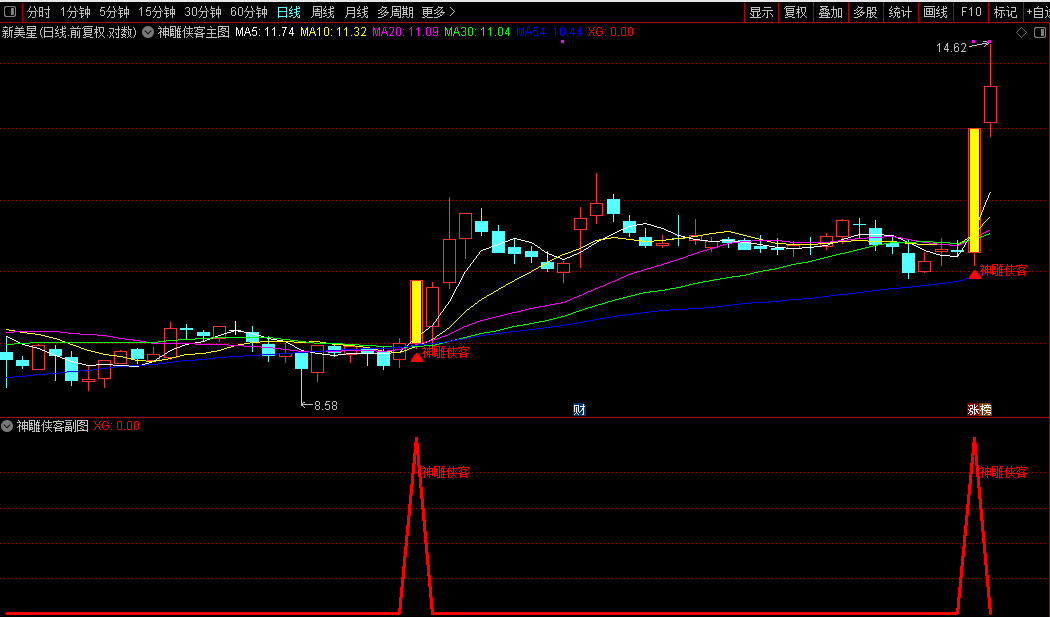 神雕侠客指标包含主副图和选股公式两部分,无未来函数,适合中短线稳健操作策略。