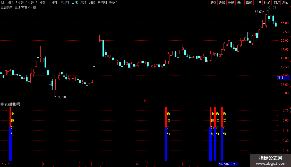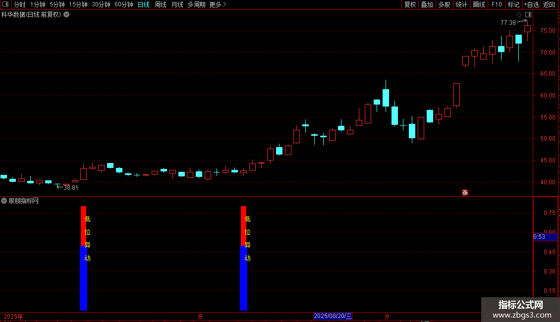 操作策略‌:当指标出现"低位异动"信号时,表明股票经过一段时间的低位整理后,多个技术指标同时转强,可考虑逢低关注。信号出现后配合其他分析工具确认趋势转变。
