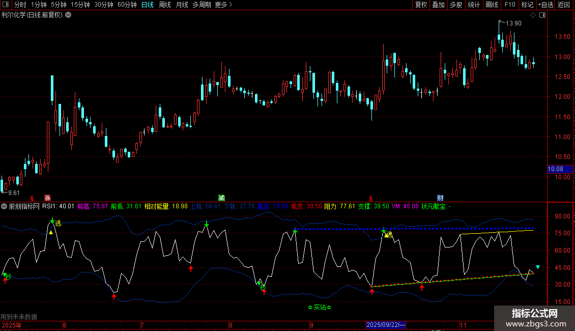 阻力:DRAWLINE(D1,RSI1,S11,RSI1,1),COLORYELLOW;