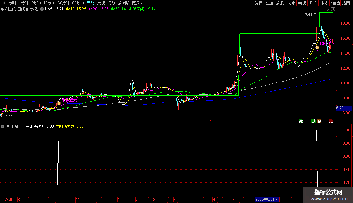 DRAWTEXT(HG9,L*0.98,'一阳指破天'),COLORFF00FF;