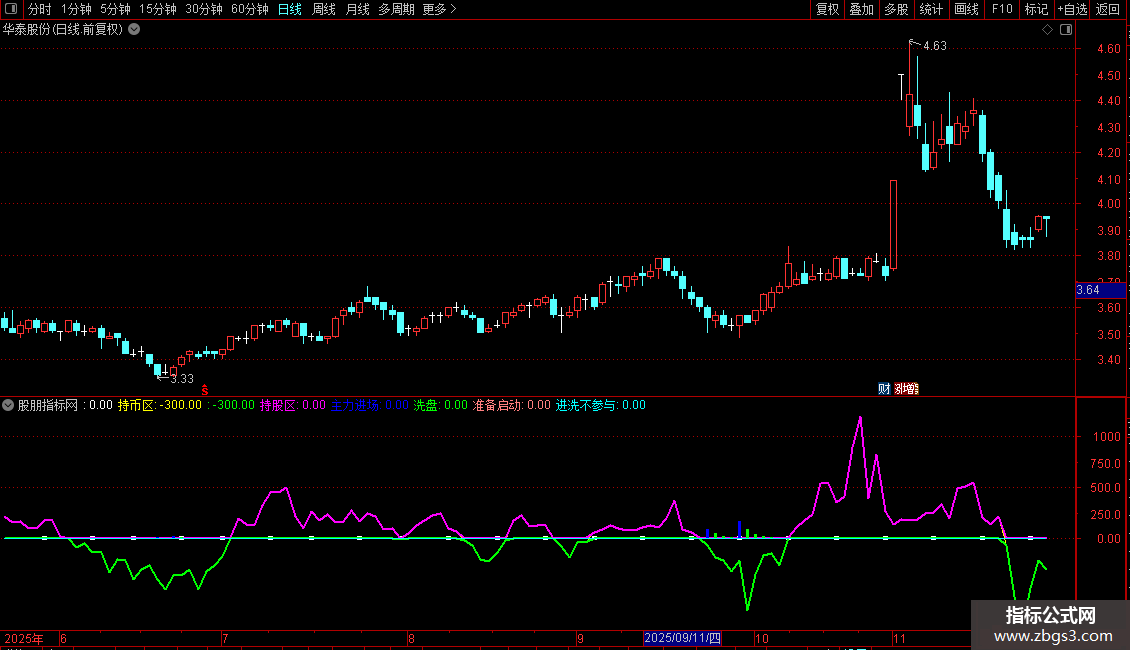 通达信主力进场洗盘主力拉升前及早介入源码分享副图