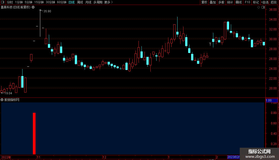 下降均赋值:如果指数关系<1日前的指数关系,返回指数关系,否则返回无效数POINTDOT,画绿色 线宽为3