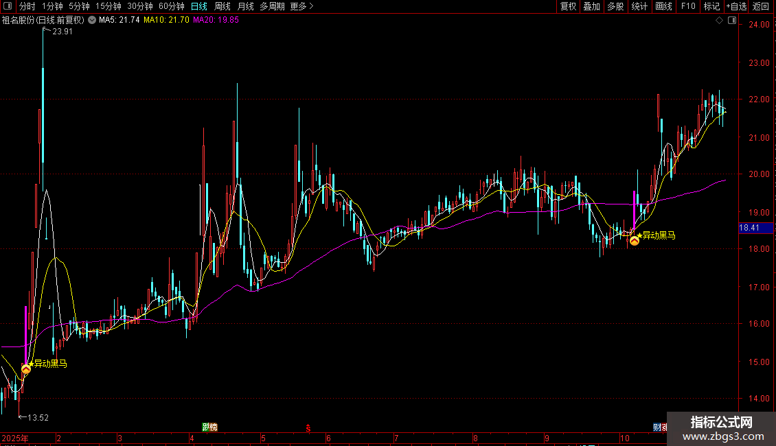 DRAWTEXT(异动黑马,LOW,' ★异动黑马'),COLOR00FFFF;