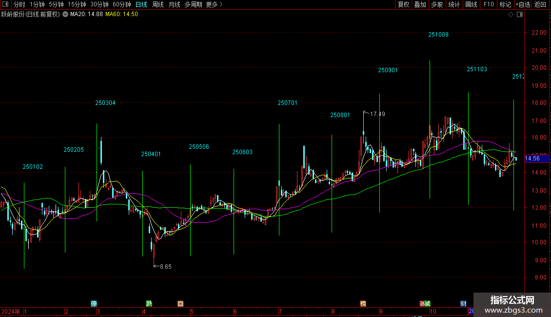 有的朋友喜欢在日K线图上参照月线进行选股,现分享带有月线时间窗的日K均线主图指标(也可以你自己将源码中的“时间窗”部分源码提取出来加在你喜欢的主图或副图中),供需要的朋友下载。