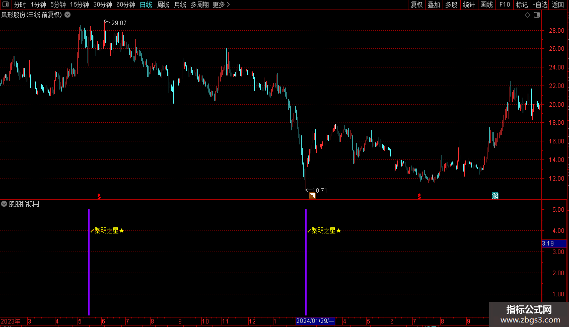 该指标通过多条件组合识别股票的“黎明之星”形态,主要功能包括: