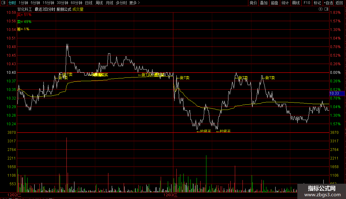 DRAWTEXT((比>1.1 AND 止跌见底< 5),ZRS,'←做T买'),COLORYELLOW;