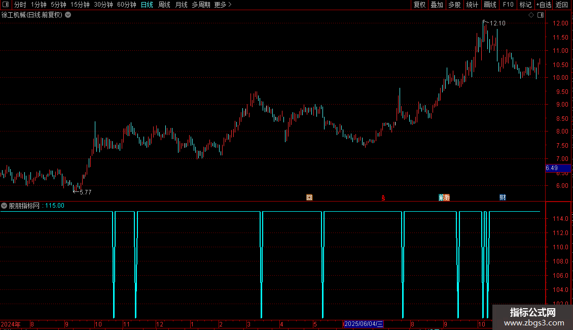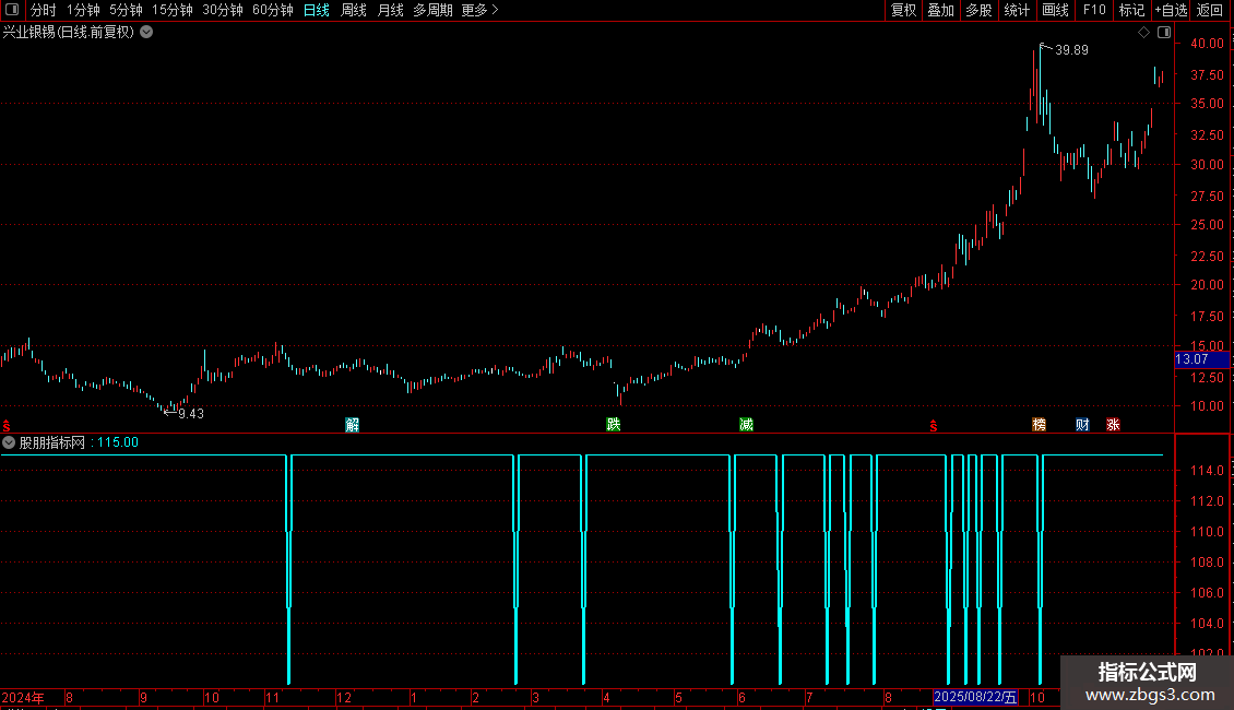 IF(CROSS(K,D) AND D>55,100,115),COLORCYAN,LINETHICK2;