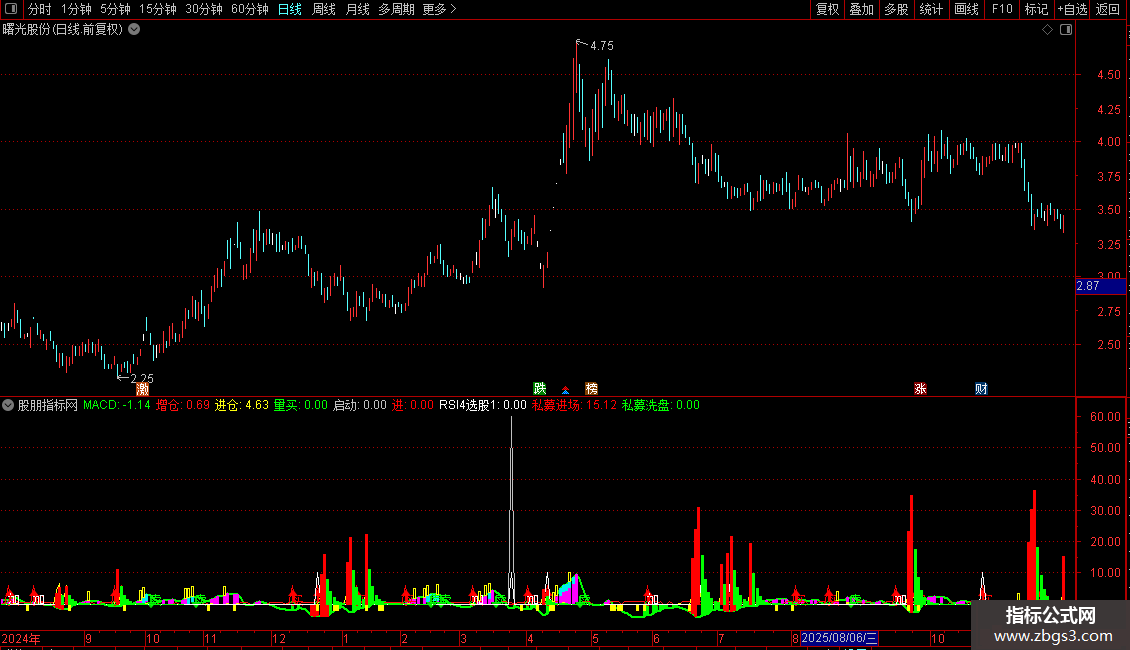 洗盘:=IF(VAR11A>REF(VAR11A,1),VAR11A*8,0),COLORFFF810,LINETHICK0;
