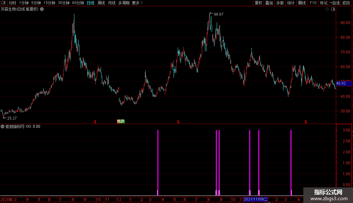 D5:=CROSS(0.9,1/VOL*1000>0 AND KDJ.J<0) OR CROSS(0.9,1/VOL*1000>0.01 AND KDJ.J<0);