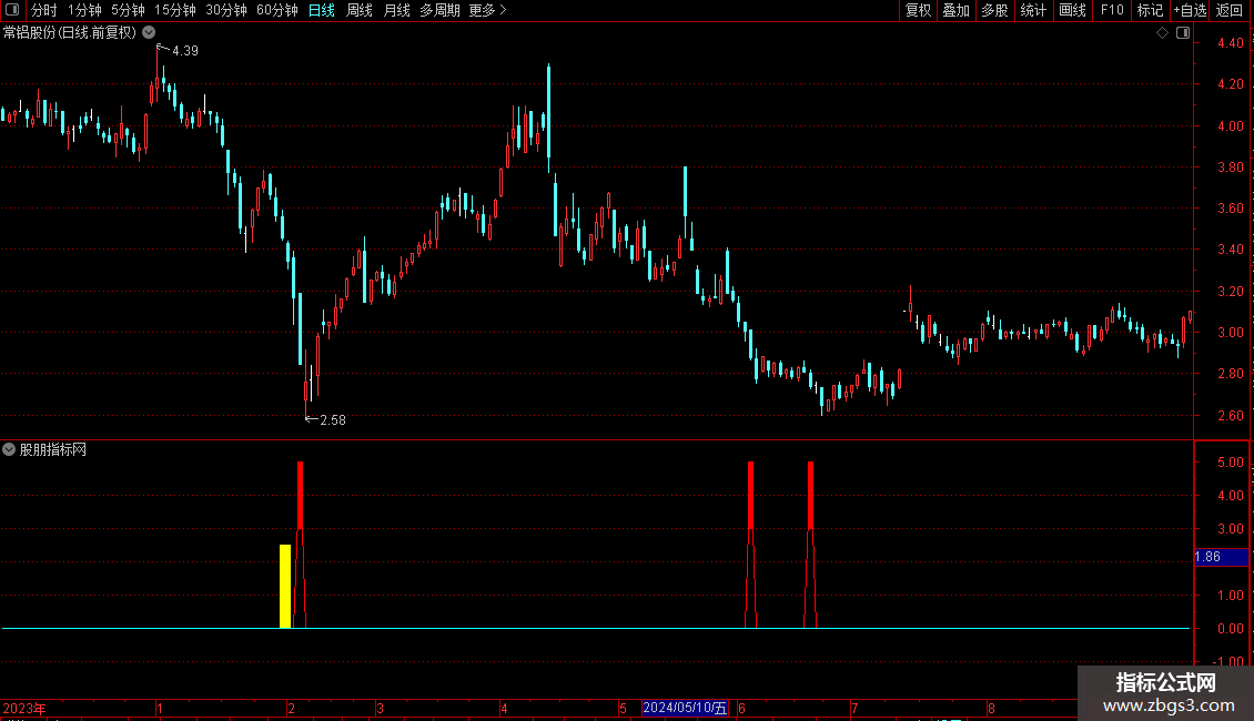 2\. 黄色柱状图:黄色柱状图表明市场正处于底部区域范围。它是判断市场是否接近底部的重要参考,提示投资者应开始密切关注个股动向。