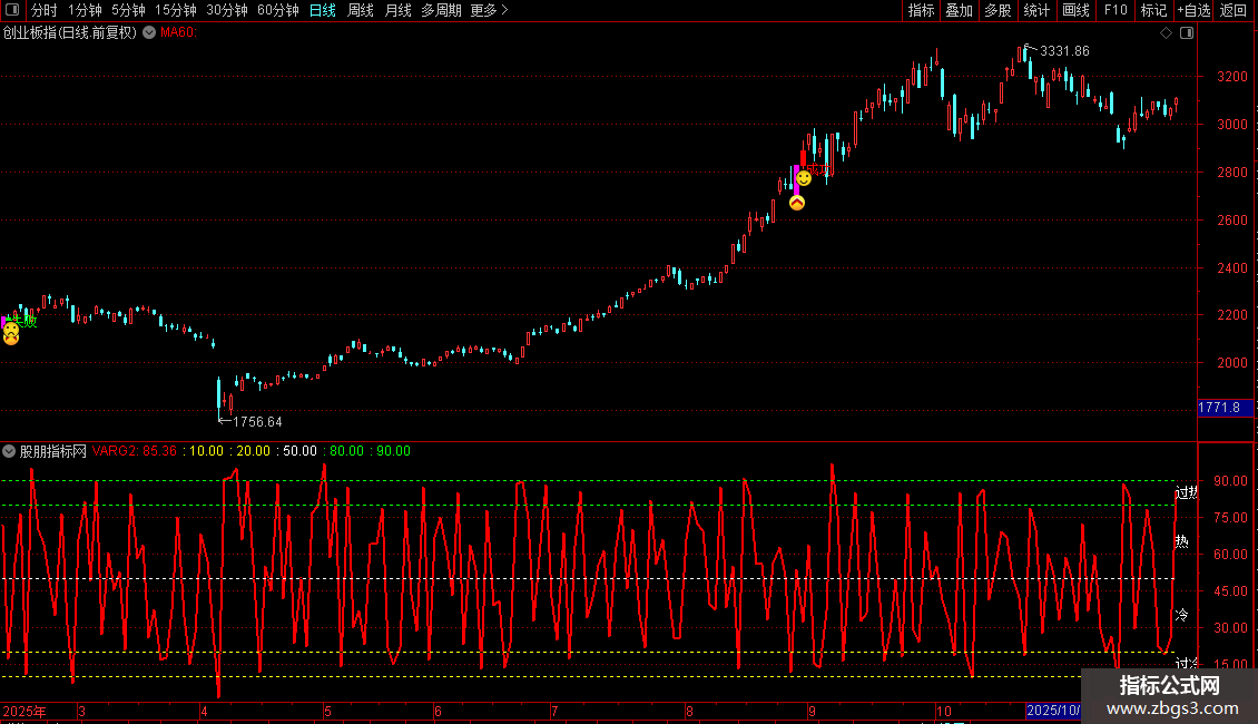 DRAWTEXT(CURRBARSCOUNT=1,85,'过热'),COLORWHITE;