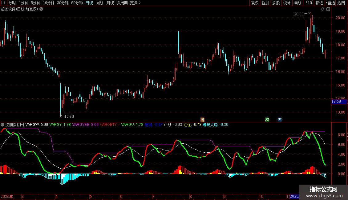 指标主要功能是通过计算股票价格的短期和长期波动来生成买卖信号。核心操作策略包括: