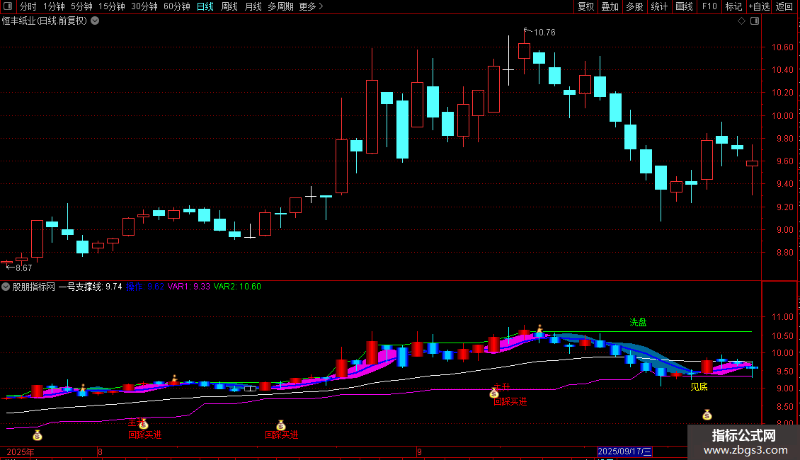 DRAWTEXT(CROSS(一号支撑线1,上线1),H*1.08,'洗盘'),COLOR00FF00;
