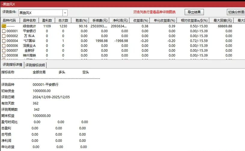 该信号逻辑着眼于趋势跟踪,将此类缩量或温和放量的阴线视为回调末端的潜在低吸窗口,适合投资者关注股价在消化压力后重拾升势的时机。回测显示,该策略在最近一年的历史数据中胜率约为90%,显示出较高的择时有效性。但须注意,信号的可靠性高度依赖整体趋势方向,在明确的上升通道或中期均线多头排列背景下应用效果最佳,可有效过滤下跌趋势中的类似反弹陷阱。实际操作中建议结合量能变化、关键支撑位及市场整体环境进行综合判断,并严格执行止损纪律以控制风险。通过主副图指标的多维度确认,该体系为趋势交易者提供了一个结构清晰、信号数量适中的观察与决策工具。