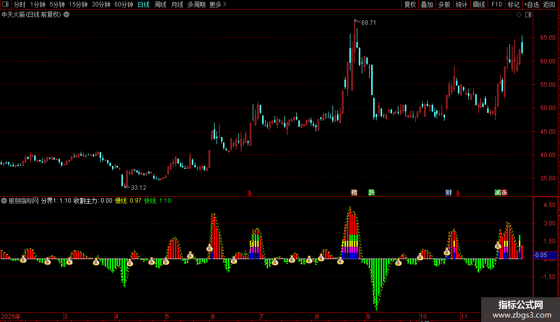 收获:=BARSLASTCOUNT(分界1>=0)=1;