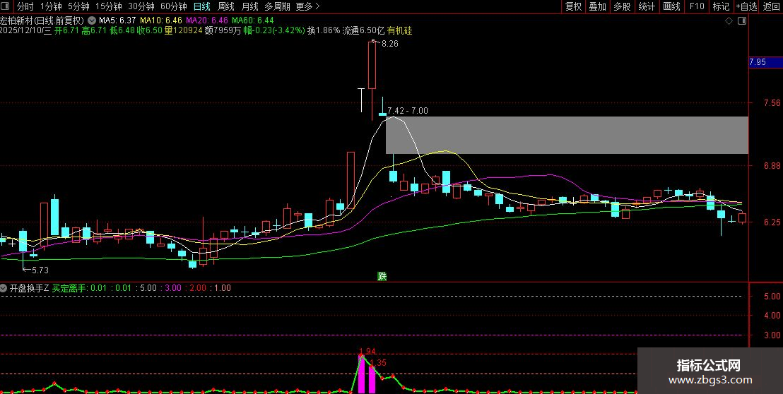 通达信板神之路〖开盘换手〗 通过资金量比分析识别买卖时机源码副图