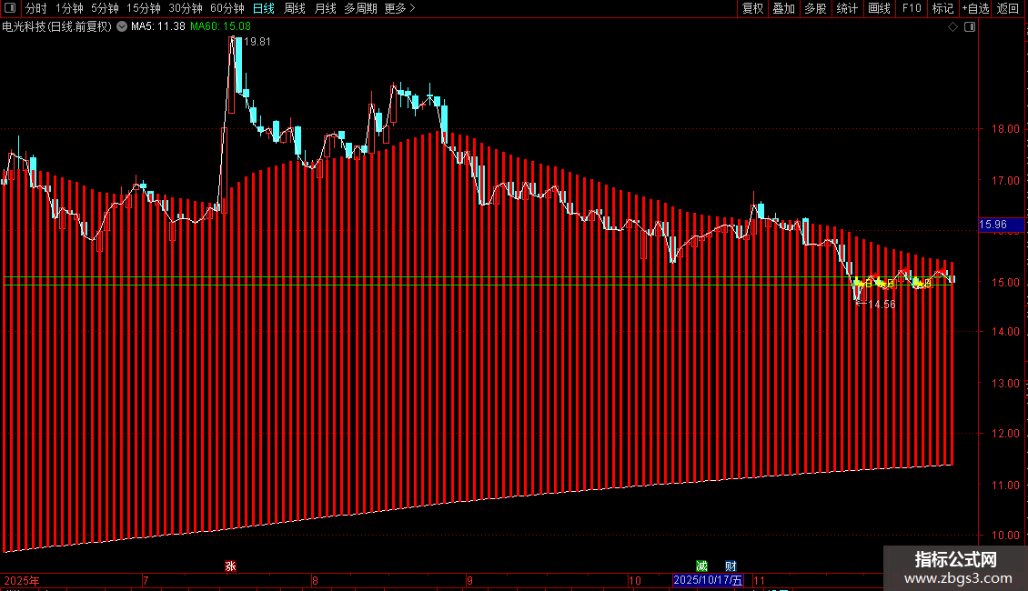 AA1赋值:上次MA60>MA20AND(MA20=MA10ORMA20>MA10)距今天数