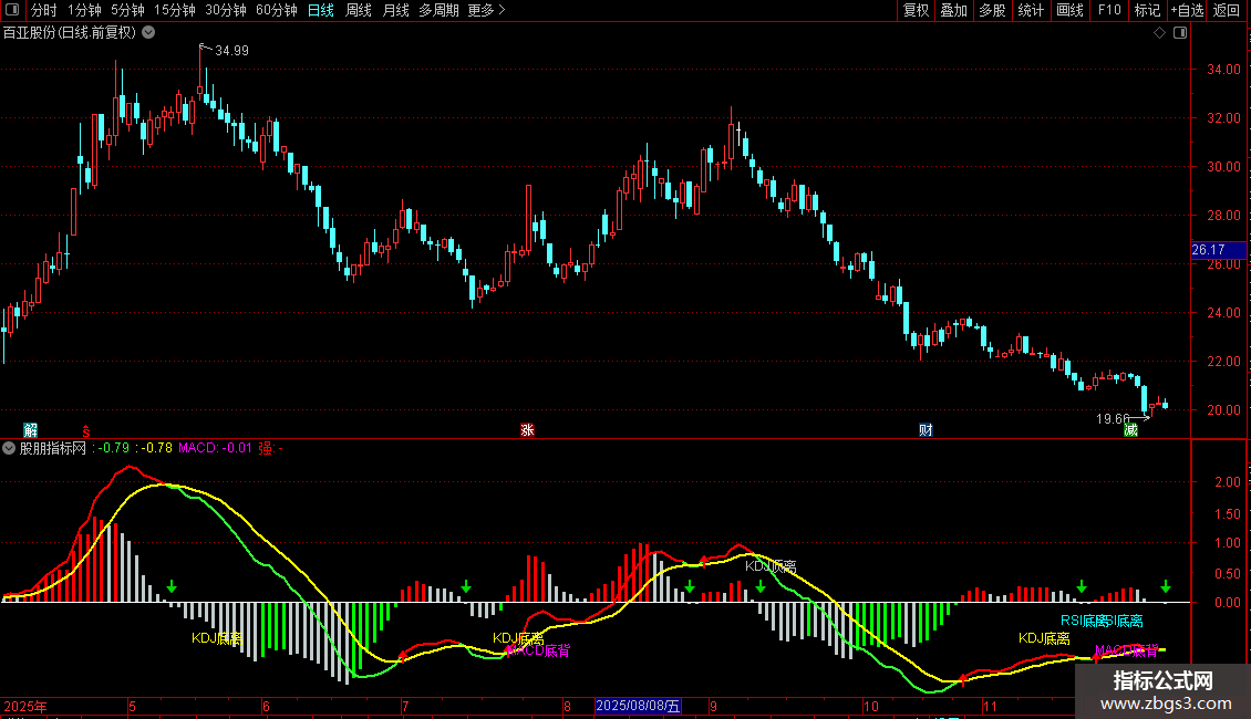 DRAWTEXT(B1>0,-0.8,'MACD底背'),COLORFF00FF;