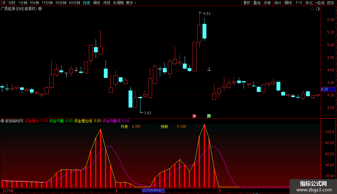 资金均量线:MA(DC,5),COLORMAGENTA;