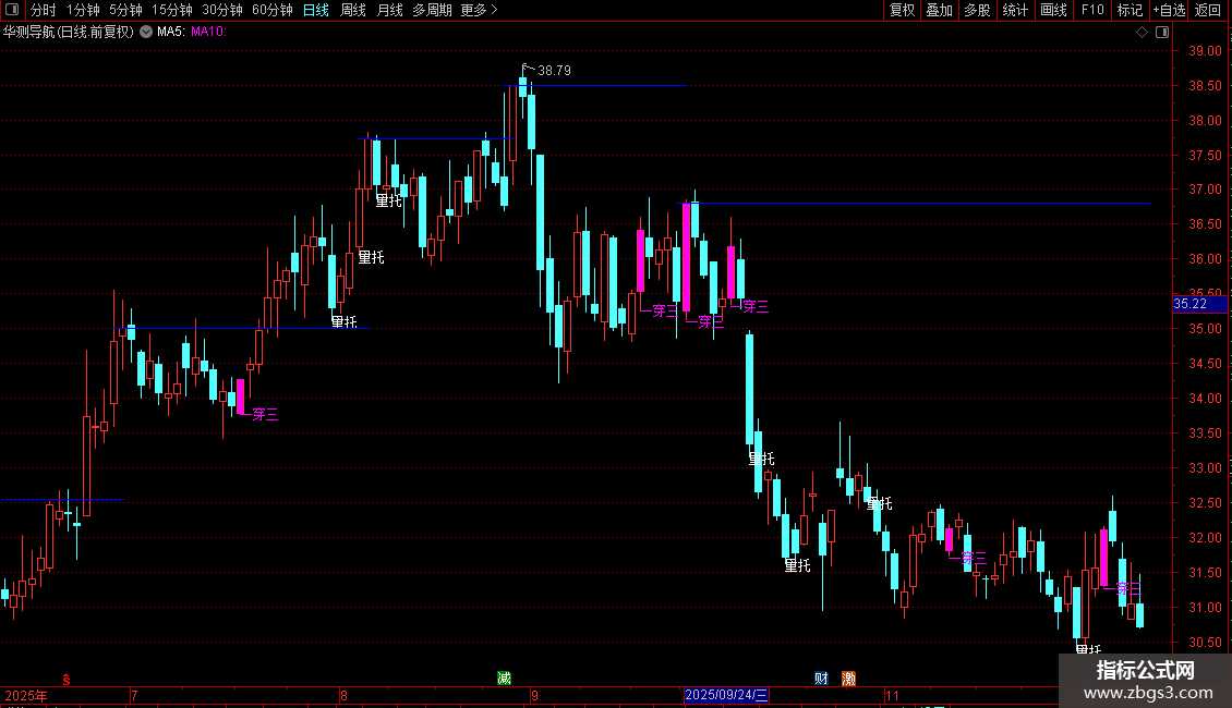 一穿三:=MA1>O AND MA2>O AND MA3>O AND MA1<C AND MA2<C AND MA3<C AND CLOSE>OPEN ;