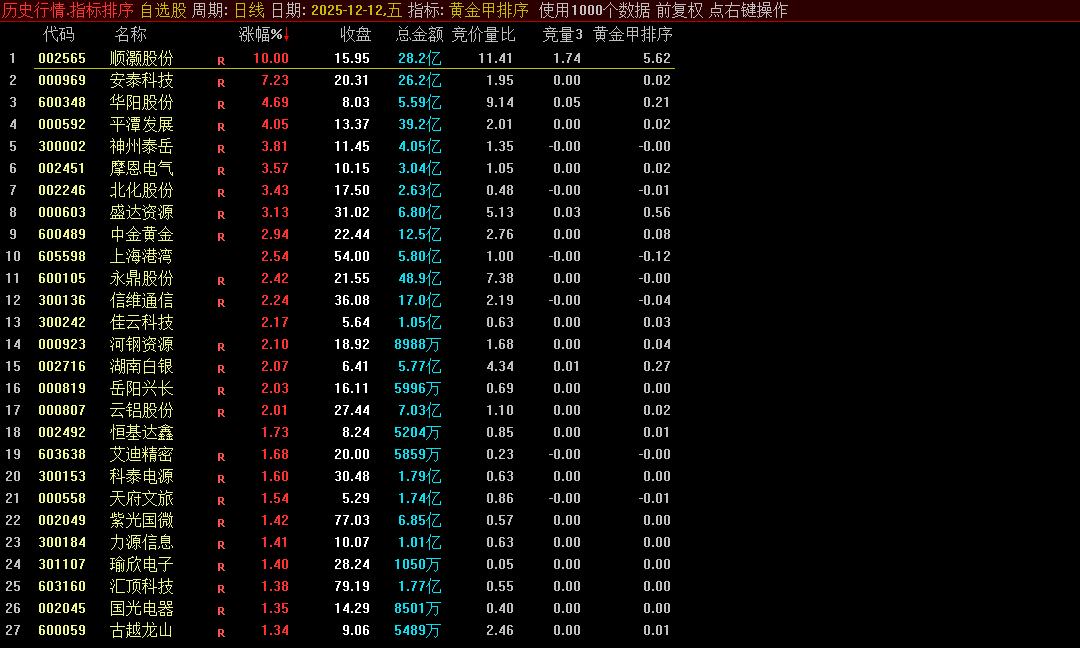 个股在竞价阶段的资金关注度和潜在强度。实际应用中,“黄金甲排序”可能作为核心排序依据,值越大通常代表竞价阶段表现越强势。