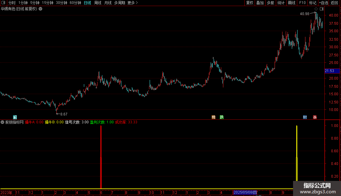 擒牛A:FILTER(CC,2) AND ((CROSS(C,MA10) AND 角度>40)),COLORRED,LINETHICK2;