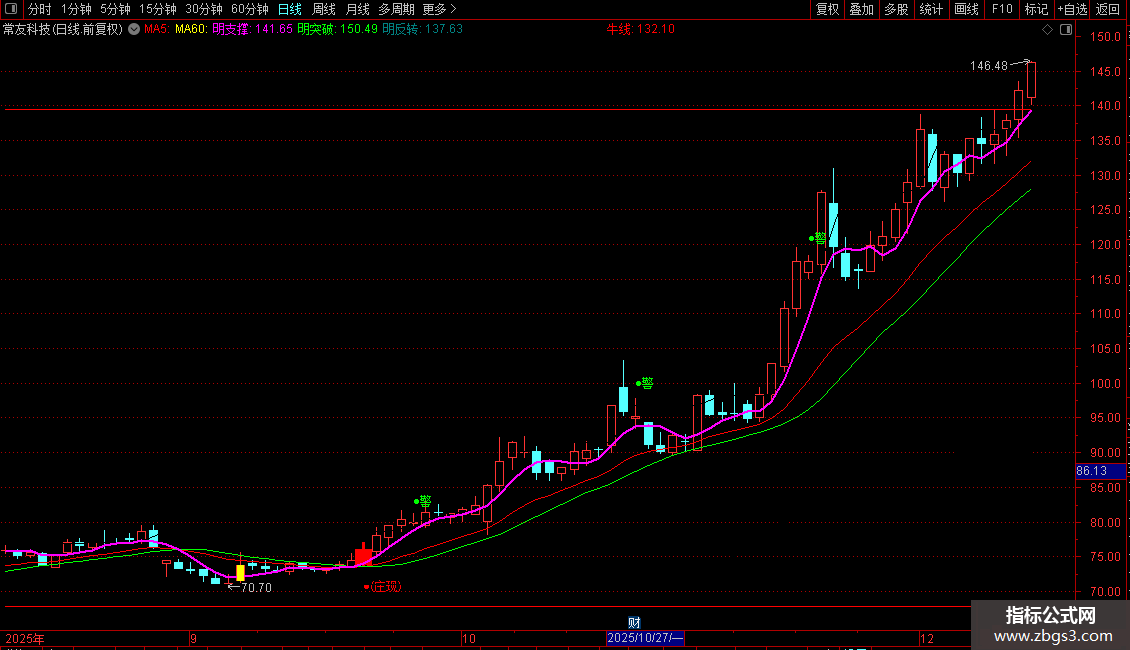AA:=CROSS(MA(C,5),MA(C,20)) AND CROSS(MA(C,5),MA(C,30)) AND CROSS(MA(C,5),MA(C,60));