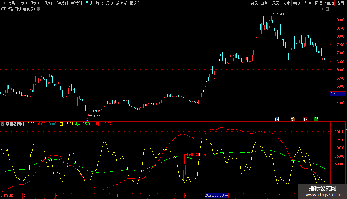 D月:=SMA(K月,3,1),COLORYELLOW;