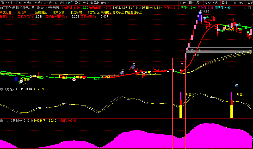 通达信金钻【飞龙筹码擒龙系统】主副/选股指标跟踪股价与均线的偏离程度自动计算关键价位源码