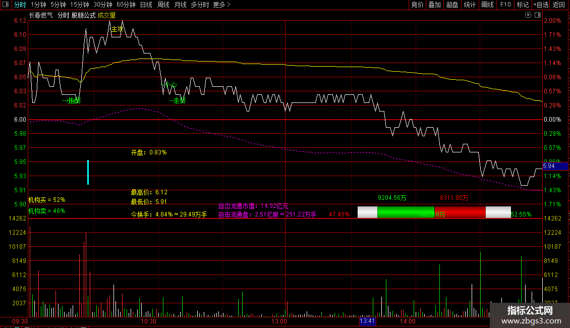 分时资金流主图指标源码如下: