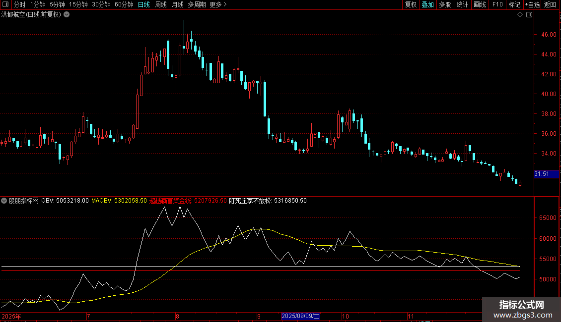 MAOBV:MA(OBV,30); 超越赢富资金线:REFDATE(REF(HHV(OBV,10),1),DATE),COLORRED;
