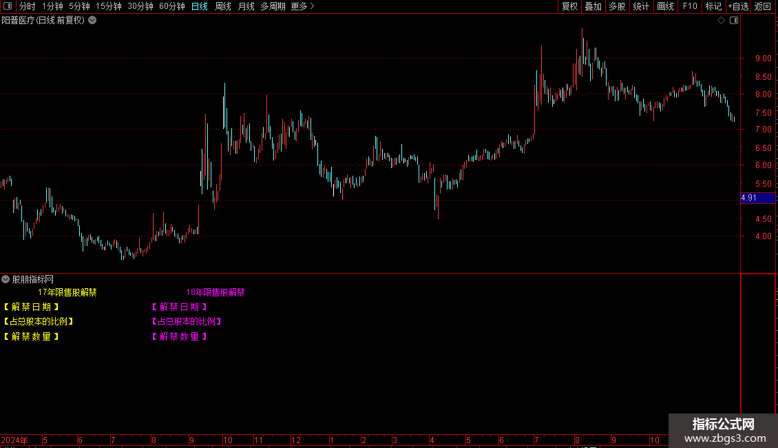 DRAWTEXT_FIX(1,0.25,0,0,'18年限售股解禁')COLORMAGENTA;
