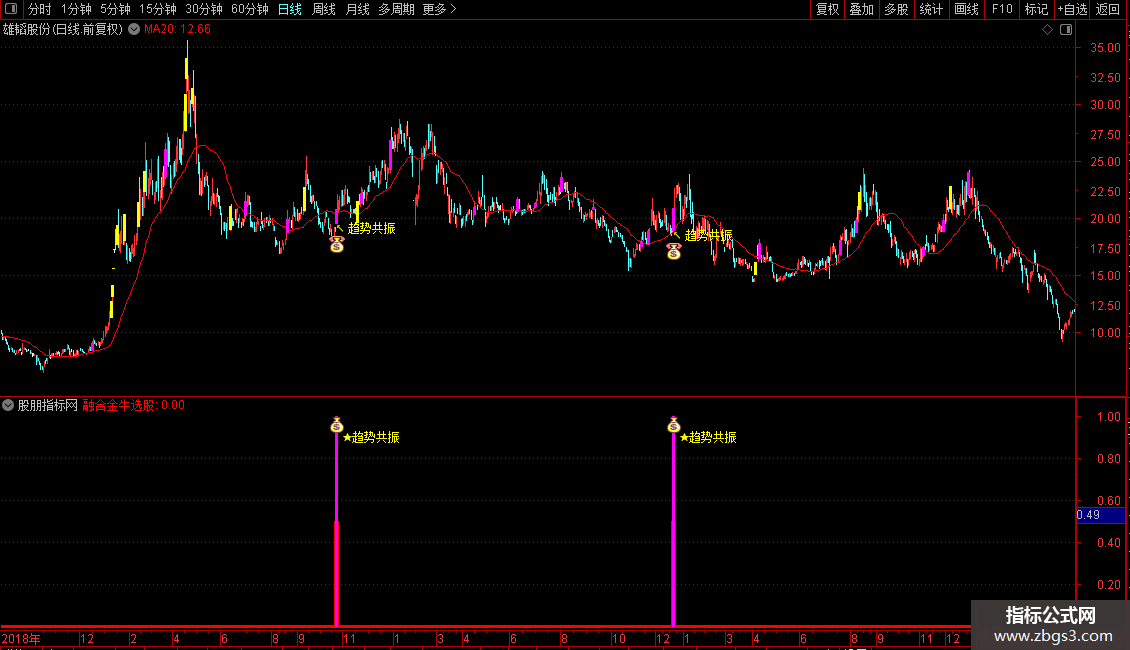 核心用途:筛选「量价共振 + 趋势突破 + 主力筹码异动」的强势股,通过主图可视化标注提示交易信号。