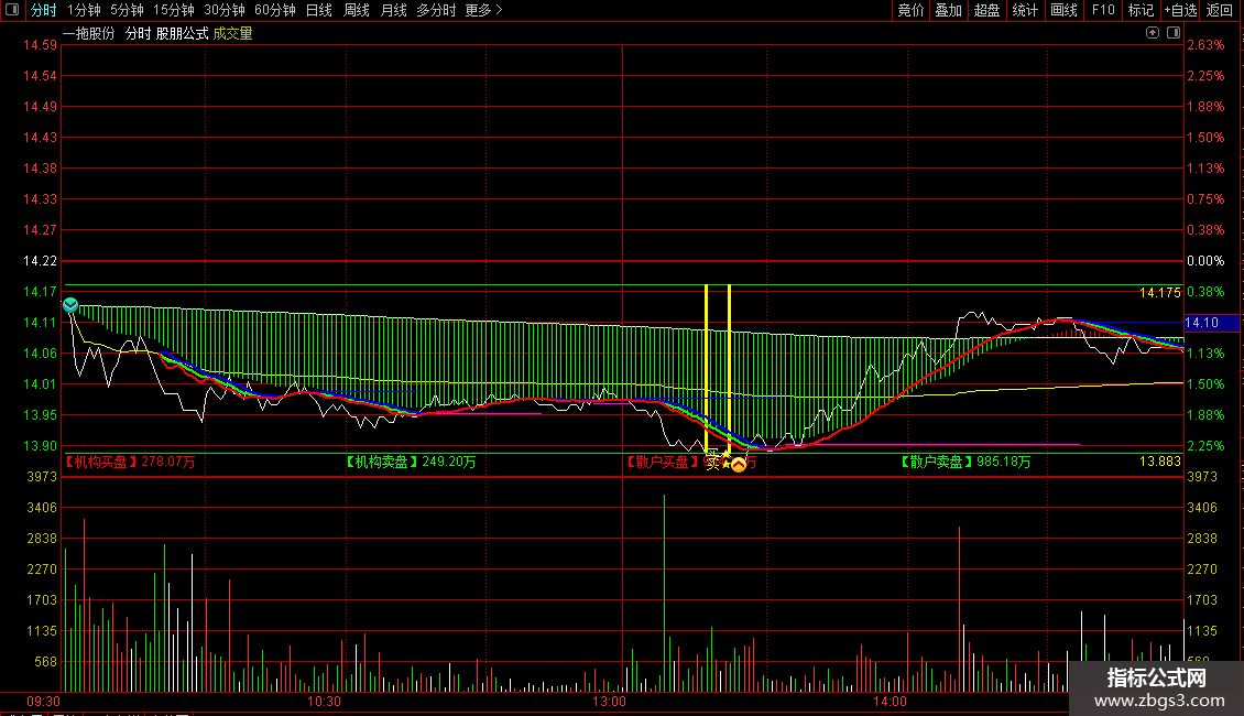 STICKLINE(VAR14>=0,多方,VAR13,2,0),COLORYELLOW,NODRAW;
