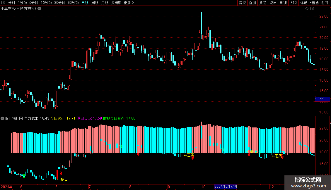 ZZ赋值:(开盘价+最高价+最低价)/3