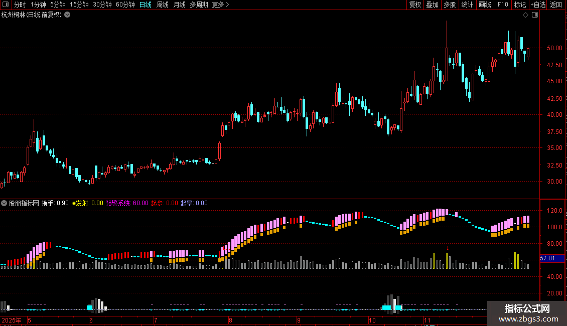 预警系统:IF(ZBGS_7>=200&&ZBGS_6>=150,15,IF(ZBGS_7<=-200&&ZBGS_6<=-150,-15,ZBGS_9))+60,LINETHICK0;
