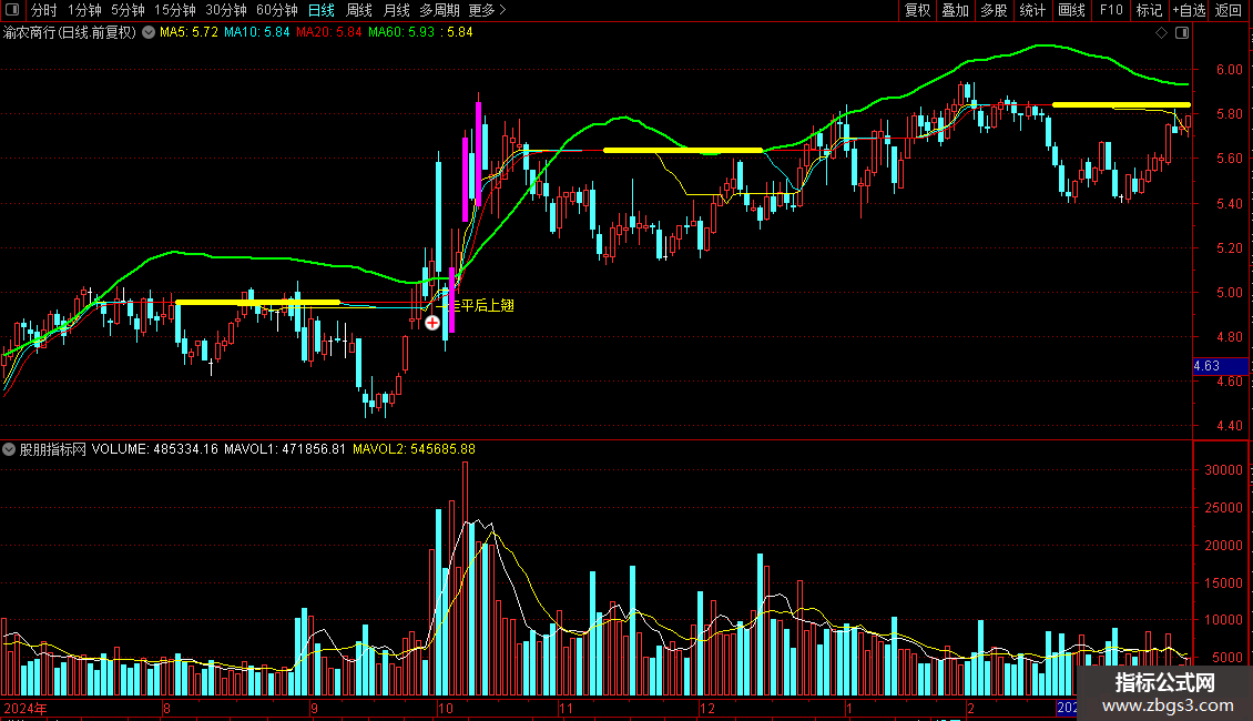 该主图指标用于捕捉平台突破后的波段买入机会。股价经过一段横盘整理后,若强势突破原平台,常会快速拉升。随后价格整理形成新平台,再次突破时将迎来新一轮上涨。