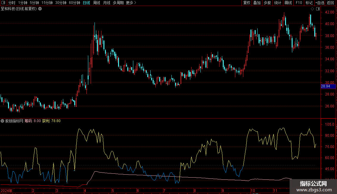 通达信『筹码获利』副图/选股指标想不赚钱都困源码