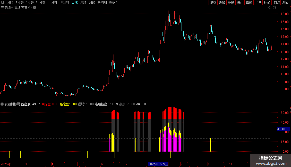 中控盘:IF(控盘度>=60,控盘度,0),COLORRED,NODRAW;